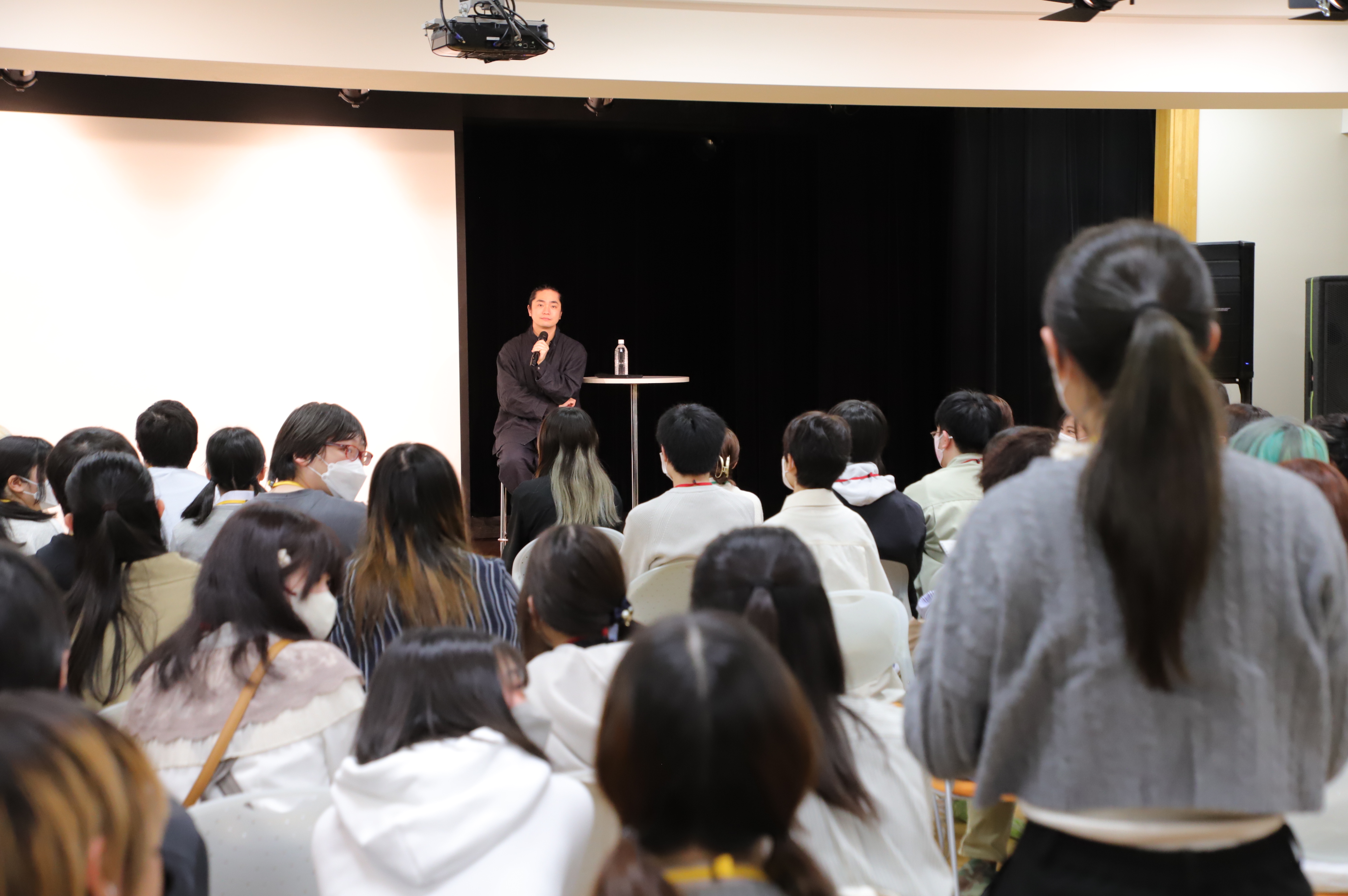まず、午前は在校生のみの特別授業を開催し、声優を目指している学生に様々なアドバイスをいただきました。