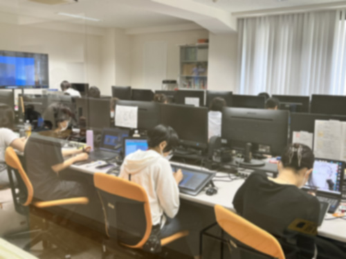 ⇧学校きて課題を進めている学生たち