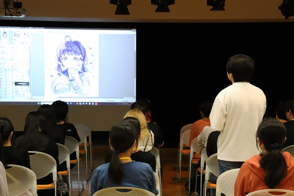 特別講座には、オープンキャンパス参加者と合わせて在校生も参加。せんちゃさんによるライブペイントを実施しました。