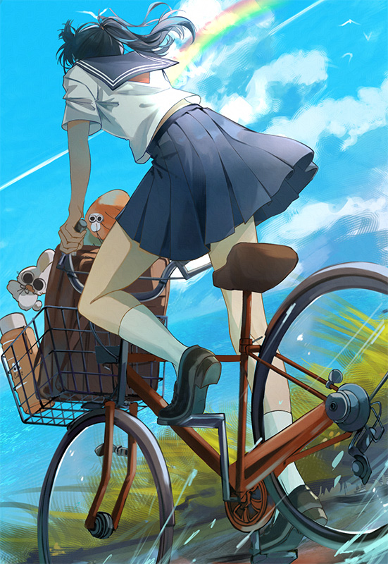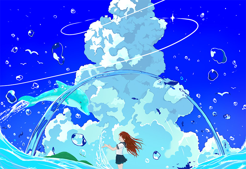鮮やかな色彩は互いを邪魔をしておらず、キャラクターの目に映る世界の美しさが伝わる、とても素敵なイラストでした。