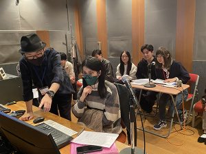 卒業制作などのアニメーション制作では声優学科の学生に協力いただきアフレコを行っていきます。