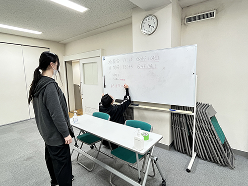 明日開催という事で、声優スタッフ系コースの学生が準備に勤しんでいました!