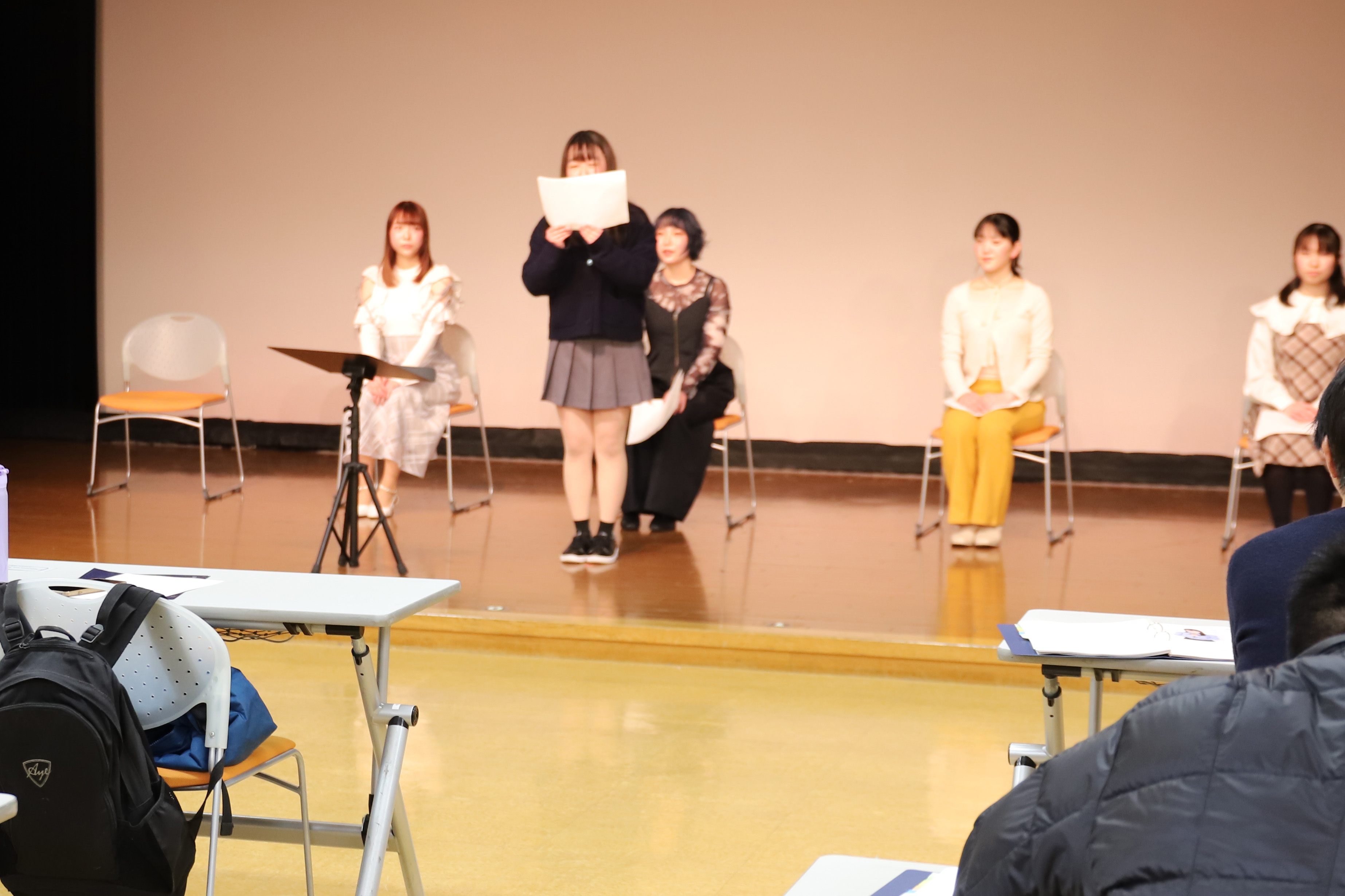 声優学科ブログ 声優系コース「模擬オーディション」を実施しました! 2026年03月17日 昨日、声優系コース1年生と総合声優コース2年生を対象とした「模擬オーディション」を実施しました。 1年生にとっては2回目の模擬オーディション。 第1回目は通常の教室で行いましたが、今回は本番の校内オーディションを想定して、ホールで行いました。 複数のプロダクションの方々にご来校をいただきました。 とても緊張した学生もいたかと思いますが、1年間の学びを活かしてみなさん堂々と発表ができていましたね! 本番に向けて準備を重ねていきましょう!!