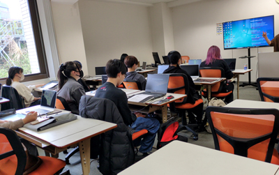 授業前の準備として、作画系学科はPCガイダンス。声優系学科は新入生の声優自己診断チェックを行いました。