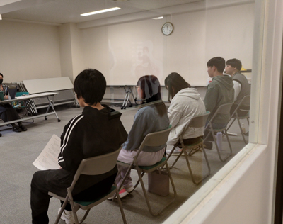 新しい教室で、同じ学科・コースの仲間と一緒に、やや緊張しながらガイダンスを受けていました。