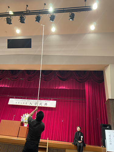 式典前には2025年度の特待生として選ばれた学生達が証書受け取りの練習・照明のセッティングなど様々な準備をしていました。
