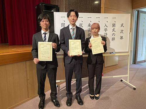 昨年度の特待生として表彰される学科代表の3人。