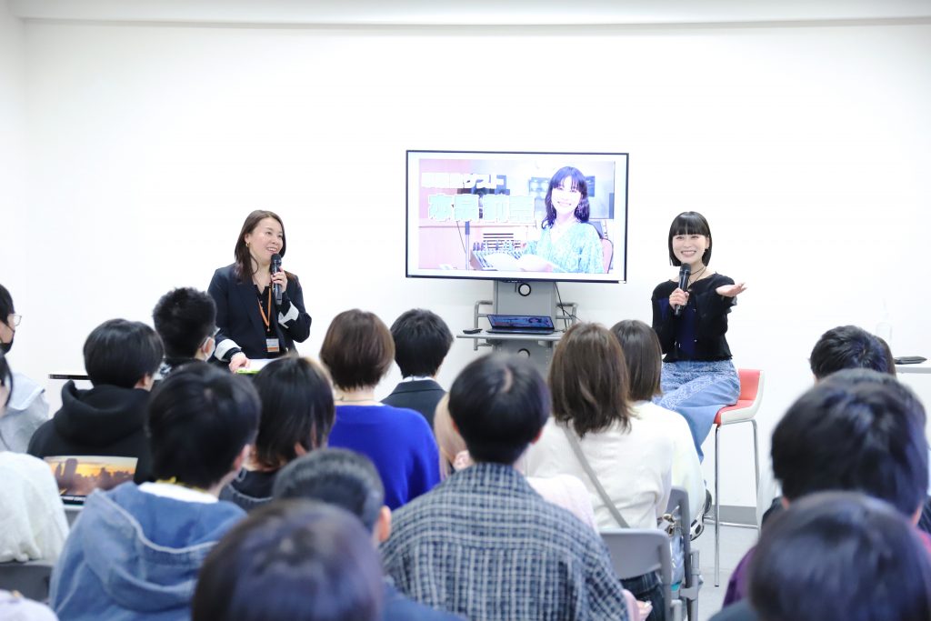 3月29日(日)オープンキャンパスにて、ゲーム「プロジェクトセカイ カラフルステージ! feat.初音ミク」日野森雫 役、アニメ「死亡遊戯で飯を食う。 」伽羅 役、など幅広く活躍していらっしゃる卒業生声優 本泉莉奈さんにお越しいただきました。