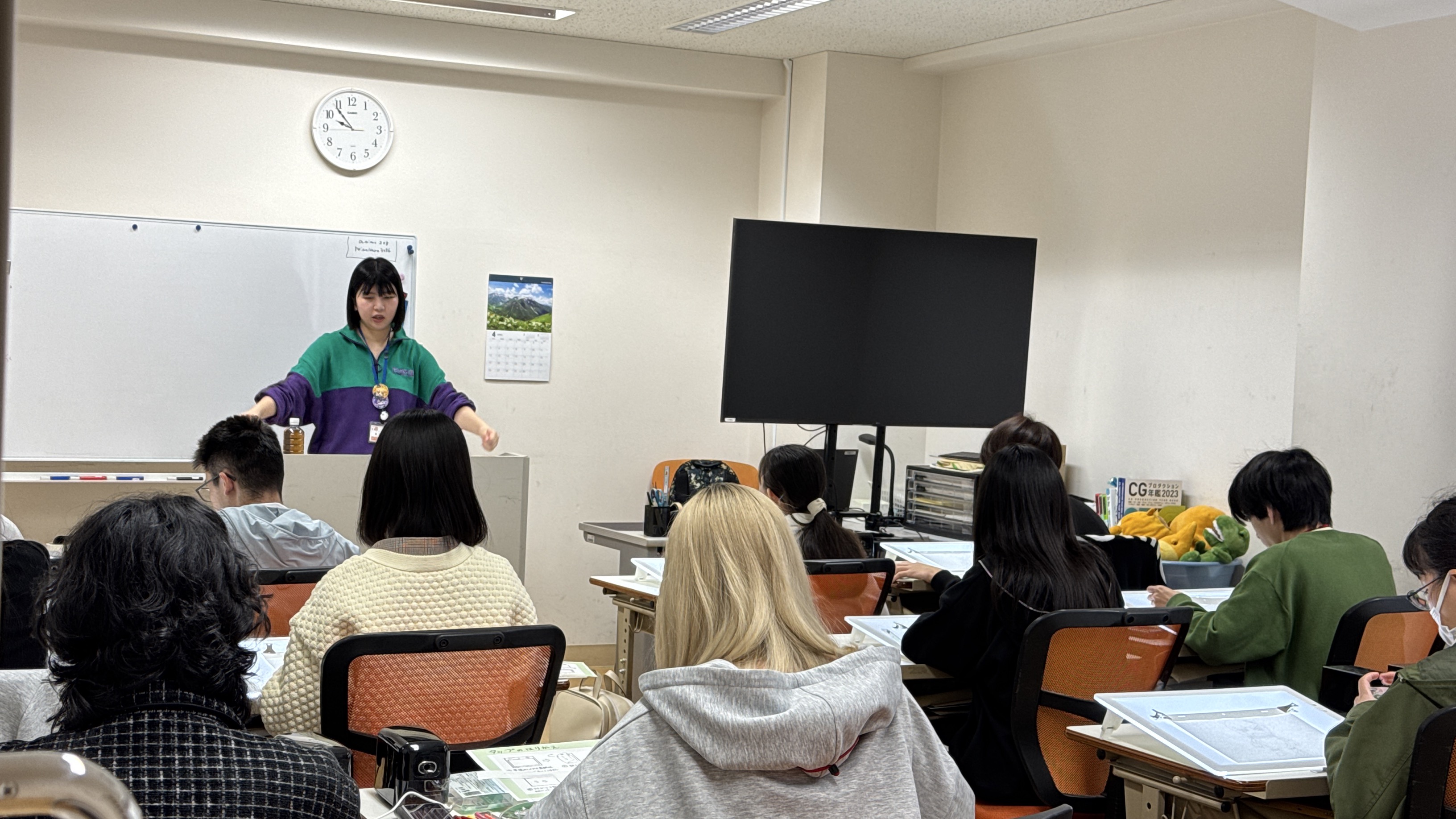 先生のひとり言 新学期すた―――――とっ★ 2026年04月17日 みなさんこんにちは^^ 4月に入って暖かくなったな~と思いきや…… ……暑いじゃないですかぁ!! 朝晩は冷えるので寒暖差に気を付けてお過ごしください~ 色々な場所でお花が咲いていて1年あっという間だな~という気持ちです…(・□・;) 1年生は新しい環境で緊張すると思いますが 楽しんで授業を受けてゆきましょうね^^ さて! 今回は授業の様子をちょろっとお見せします~~ デッサン室へ!天気が良くてよかったですね~^^ 声優学科の2年生たちは早速台本を手にして演じている姿が生き生きとしておりました^^ 今年はどんな1年になるでしょうか…DOKI WAKUです☆★☆ 教務部 小野