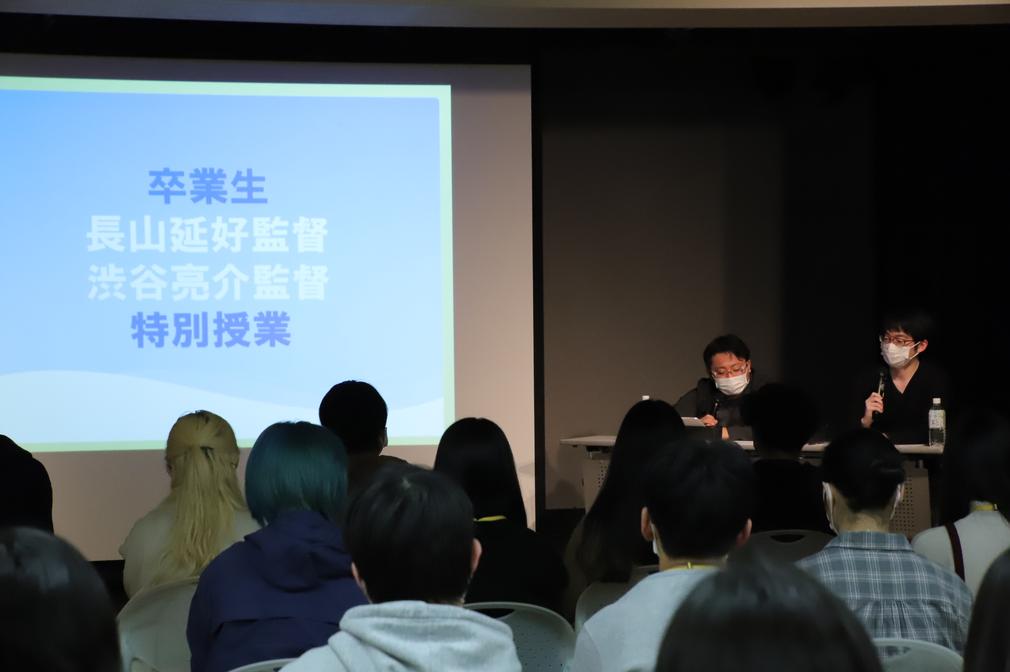 11月8日(火) 卒業生 アニメ監督の長山延好さん、渋谷亮介さんによる特別授業を行いました。 長山さんは現在放送中のTVアニメ「恋愛フロップス」にて監...